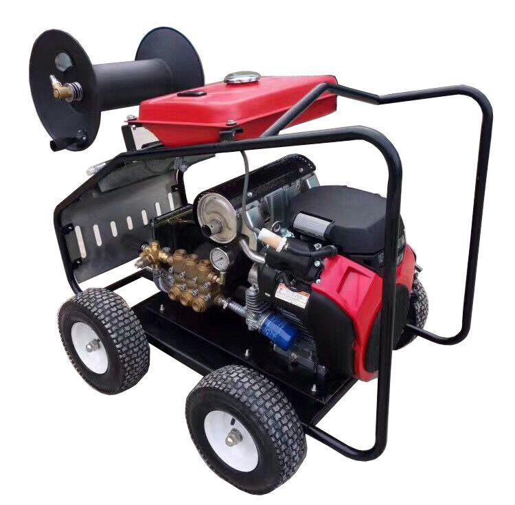 移動式高壓管道疏通機用于疏通、清除管道中的堵淤和污物。它以汽油機為動力,驅動高壓泵運轉,利用高壓水射流在噴頭上產生的推進力疏通管道。當噴頭到達管端時,高壓水后作用力清掃管壁并將雜物帶至管外,以達到清洗管道的目的。是現代化生產必備的清洗設備。特別適合物業、市政、城管、環衛部門清洗、疏通清洗管道。